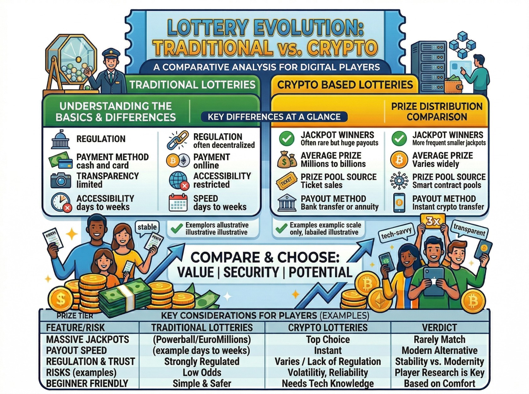 | Category | Traditional Lottery | Crypto Lottery |